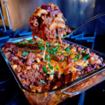 Wersji chili mac’a jest mnóstwo, jak Ameryka długa i szeroka, ale ja nie poszłam na łatwiznę – chili przygotowane jest z mięsem oraz FASOLĄ I WARZYWAMI, które, według opinii moich królewiczów, są zupełnie zbędne. Całość ląduje na koniec w piekarniku, bo któż nie lubi zapieczonego sera!