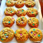 Ciasteczka są bardzo klasycznie amerykańskie, duże, kruche po brzegach i kojąco miękkie w środku. M&M’sy są tu miłym oku, kubkom smakowych i zębom (bo sympatycznie chrupią) dodatkiem. Z okazji Wielkanocy zaszalałam i kupiłam cukiereczki w iście wiosenno świątecznych kolorach, ale zwykłe też zdadzą egzamin na piątkę. Co tam piątkę – na szóstkę, za całokształt.