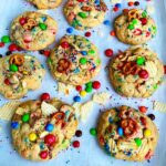 Niech Was nie odstrasza ta mało wdzięczna nazwa, bo podejrzewam, że śmietnik Mikołaja to musi być skarbnica smakowitych resztek z niedomykających się prezentów! I tak na przykład nie zmieściły się w paczce precelki, więc do kosza, czekolada biała i mleczna, kolorowe M&Ms, ba, nawet pogniecione chipsy ziemniaczane w nim wylądowały;-) A z kosza do michy, z michy do piekarnika i polarnym ekspresem mamy całkiem zgrabne, kompletnie uzależniające ciasteczka.