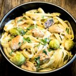 Makaron z sosem Alfredo, kurczakiem i brukselką