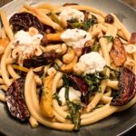 Makaron gotujemy wg instrukcji, odcedzamy i mieszamy z sosem śmietanowym. Nakładamy ricottę i buraki, mieszamy delikatnie, posypujemy orzechami i voilà, gotowe.