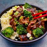 Danie robiłam dwa razy – za pierwszym razem użyłam wołowiny typu sirloin, czyli coś na kształt polędwicy, ale o wiele tańszej. Za drugim razem użyłam denver steak, czyli mięso bliskie karkówce, tylko w miarę chude. Oba gatunki były pyszne! Może to za sprawą cienkiego krojenia?