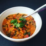 Przepadam za soczewicą w każdej postaci, do tego soczewica soczewicy nierówna, więc korci mnie, żeby nie zatrzymać się na zupie. Ale pamiętam, że mojej mniej entuzjastycznie nastawionej do soczewicy Mamie ta przejadła się bardzo szybko (zrobiłam kiedyś gar na 5 dni), więc pozostanę przy wyżej wymienionej, a przepis na soczewicę duszoną z jarmużem umieszczę przy innej okazji. Czerwona soczewica ma to do siebie, że bardzo niedługo się gotuje, więc zupę można przyrządzić bardzo szybko. Można też się trochę pobawić i dodać więcej warzyw, a nawet pierś kurczaka czy krewetki.